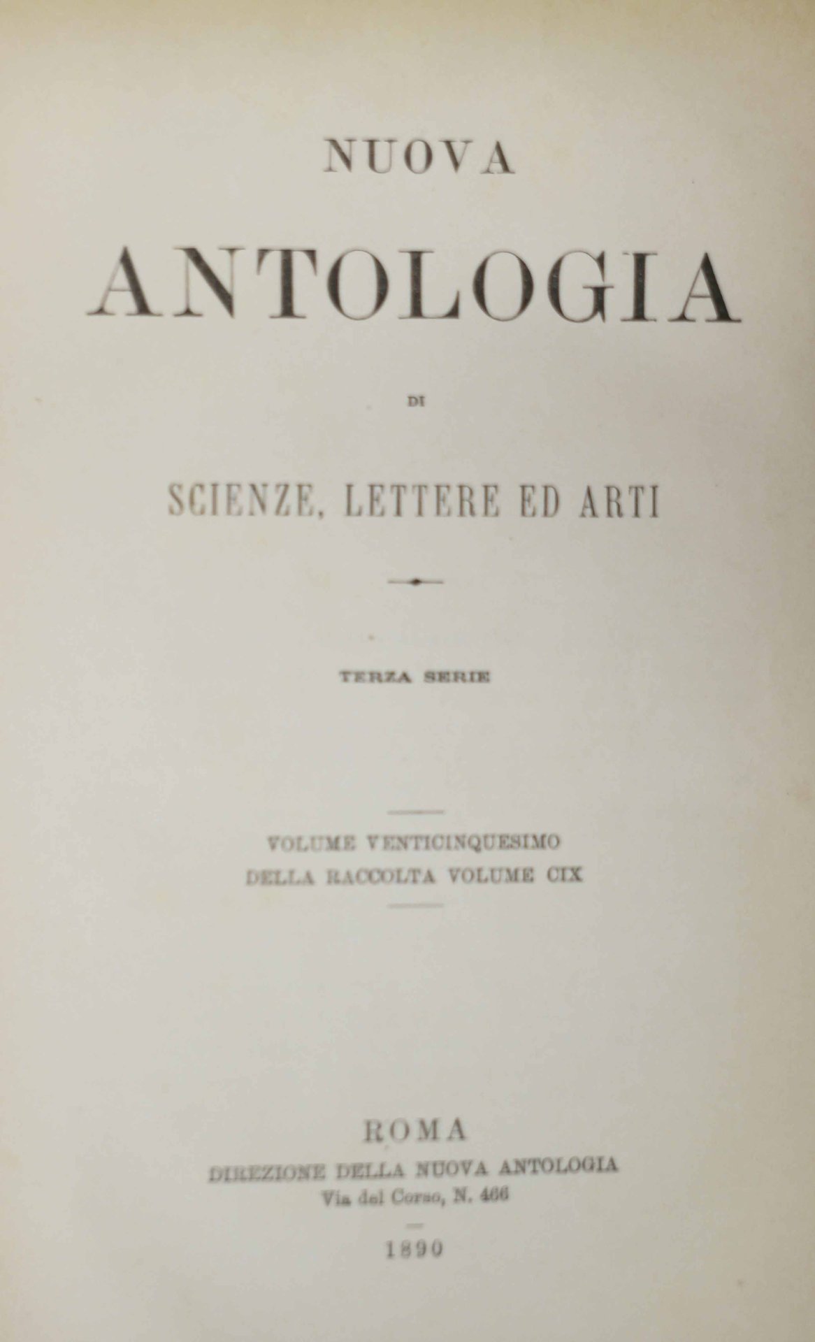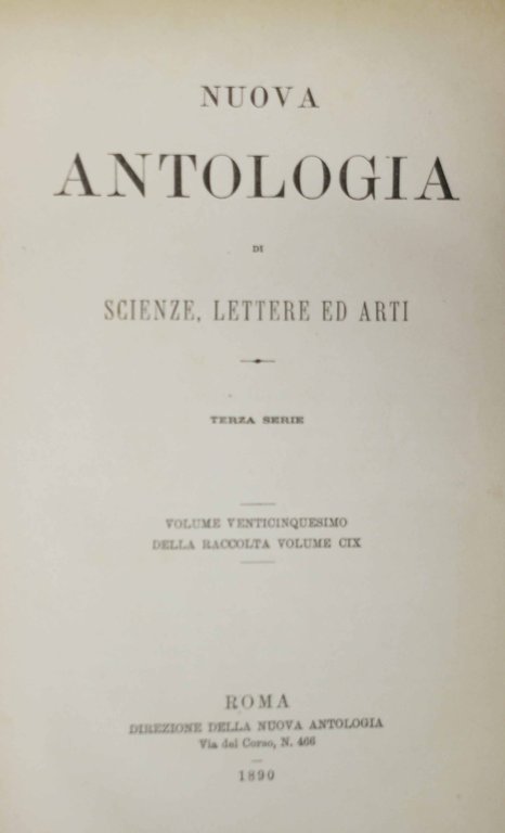 NUOVA ANTOLOGIA DI SCIENZE LETTERE ED ARTI. - Terza serie.