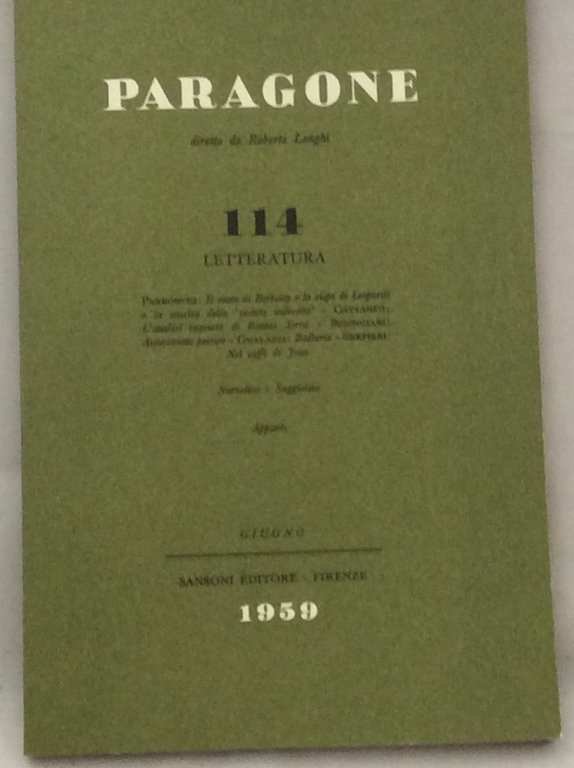 PARAGONE. LETTERATURA. ANNO 1959 NUMERO 114