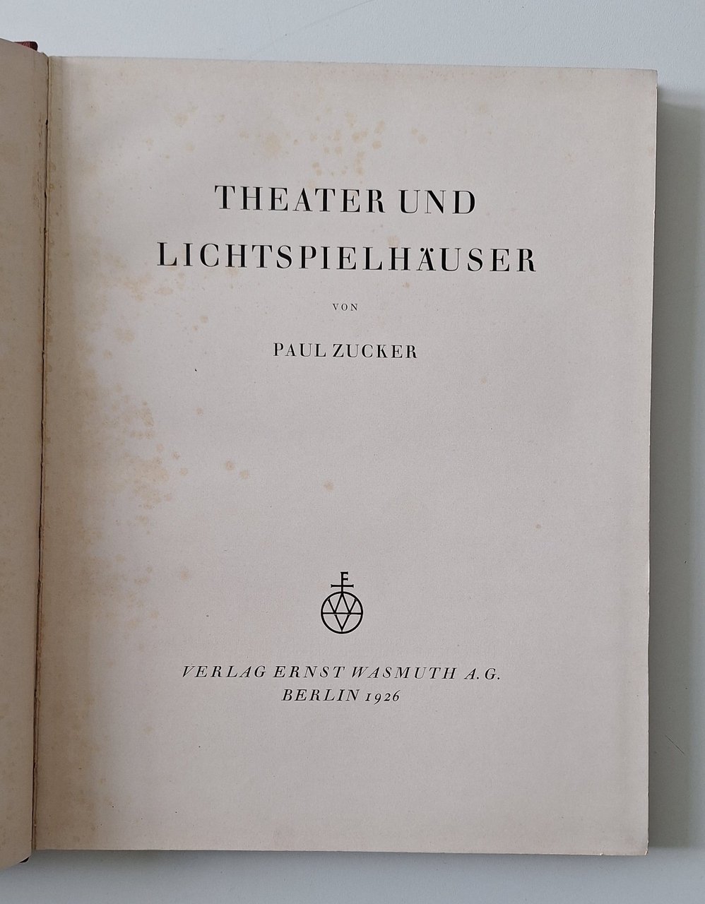 THEATER UND LICHTSPIELHAUSER VON PAUL ZUCKER E.WASMUTH BERLIN 1926