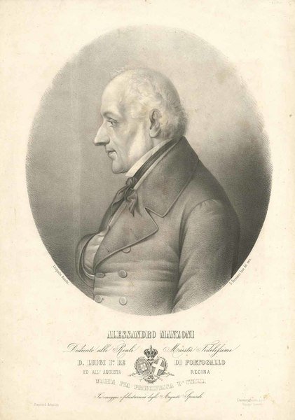 Ritratto di Alessandro Manzoni dedicato alle Reali Maestà Fedelissime Luigi I° Re di Portogallo ed a Maria Pia Principessa d'Italia in omaggio al loro matrimonio del 6 ottobre 1862