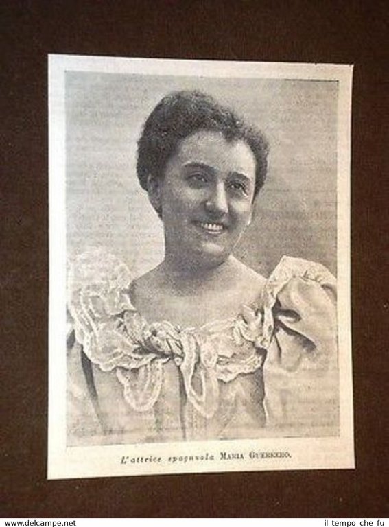 Rara Stampa Estratta da Rivista d'Epoca di fine '800 Attrice spagnola María Guerrero IP1898-005T Dimensioni Cm 13,00 x 17,00 Qualora vogliate delle scansioni migliori contattateci, soddisferemo ogni vostra richiesta. Paypal Carta di credito Bonifico bancario Accuratamente adagiate su un cartoncino e protette da pellicola trasparente rigida il tutto viene inserito dentro plico di adeguate dimensioni per proteggerne l'integrità