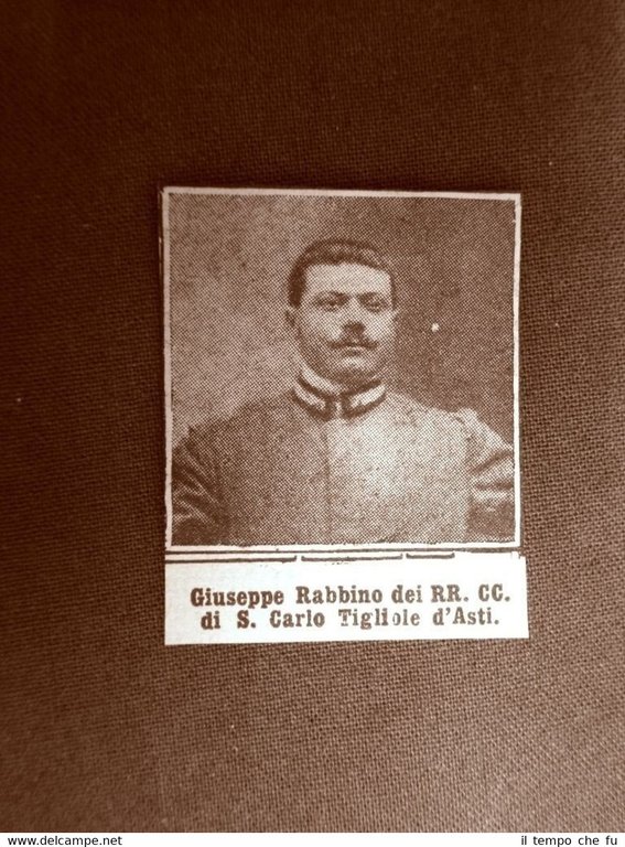 Rara Stampa Estratta da rivista d'epoca del 1918 . .stampa che ha quindi oltre 99 anni! Caduto per la Patria Giuseppe Rabbino di San Carlo Tigliole d'Asti Dei Regi Carabinieri WW1 Prima guerra mondiale del 1914 - 1918 II1918-107 Dimensioni Cm 4,00 x 4,50 Qualora vogliate delle scansioni migliori contattateci, soddisferemo ogni vostra richiesta. PaypalCarta di creditoBonifico bancario Accuratamente adagiate su un cartoncino e protette da pellicola trasparente rigida,il tutto viene inserito dentro plico di adeguate dimensioni per proteggerne l'integrità.