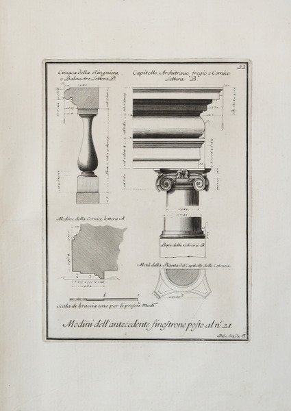 La tavola appartiene alla celebre serie ' Diverse Maniere d'adornare i cammini ed ogni altra parte degli edifizi desunte dall'architettura Egizia, Etrusca, e Greca con un Ragionamento Apologetico in defesa dell'Architettura Egizia, e Toscana, opera del Cavaliere Giambattista Piranesi Architetto. Acquaforte e bulino, firmata in lastra in basso. Magnifica prova, impressa ad inchiostro nero su carta vergata coeva con filigrana “doppio cerchio e giglio con lettera B” con pieni margini, in ottimo stato di conservazione. Edizione coeva, stampata da Generoso Salomoni nel 1769. Sebbene venga pubblicata nel 1769 una serie di epistole ne riconduce l’epoca ad alcuni anni prima, e si suppone che già nel 1767 un buon numero di tavole fosse pronto. Dal punto di vista stilistico questa può essere senza alcun dubbio considerata come il massimo dell’estro espresso dal Piranesi. Definirlo tuttavia risulta impresa disperata; né barocco, né neoclassico e né manierista, ma come semplicemente appellato dal Focillon “stile Piranesi”. La novità espressa dalle sessanta tavole che compongono il volume risulta essere, tralasciando la bellezza intrinseca delle incisioni, il fatto di rimanerne ammaliati dalla fantasia prorompente, dalla loro immediatezza, e da un intreccio di nostalgie classiche e ricordi barocchi, essendo quasi consapevoli di entrare nei sogni allucinati di un archeologo. Nel rappresentare i camini, i mobili, gli orologi e quanto altro espresso in ' Diverse maniere ' il Piranesi si serve di alcune figure ornamentali che si possono dividere in due grandi categorie. La prima comprende elementi tratti dal repertorio decorativo dell’antichità classica con particolare riferimento a quella egizia, mentre l’altra categoria è rappresentata da elementi del lessico della natura, presente soprattutto con esemplari della fauna. I concetti del Piranesi, espressi nelle forme qui da lui inventate e ricreate, appaiono inquietanti e ambigui, addirittura contraddittori e se si vuole precursori del romanticismo. A conferma della teoria di molti studiosi, che lo considerano come precursore dello stile letterario dell’Impero piuttosto che massimo esponente del neoclassicismo. Acquafortista, incisore, progettista, architetto e teorico, viene considerato uno dei supremi esponenti dell’incisione topografica, sebbene il maggiore interesse egli lo mostrasse per l’architettura. Anche se solo pochi disegni architettonici sono stati realizzati, egli ebbe comunque una grande influenza, nel Neo-Classicismo europeo, attraverso contatti personali con architetti, mecenati e artisti in visita a Roma nel corso di quattro decadi. La sua prolifica produzione di lastre di acqueforti, che combinava una straordinaria immaginazione con una conoscenza delle tecniche dell’antica Roma estremamente pragmatica, diede avvio ad una nuova e duratura percezione dell’antichità. Era anche disegnatore di strutture e palchi per le feste, decoratore di interni e di mobili, così come restauratore. L’interazione di questa straordinaria combinazione di attività lo portò ad un concetto alto del disegno, sostenuto da saggi scritti. L’eredità che lasciò, relativamente alla sua visione unica della civiltà romana, fu una interpretazione immaginativa e una ricreazione del passato che ispirarono scrittori e poeti così come artisti ed altri disegnatori. Bibliografia John Wilton-Ely, ' Giovanni Battista Piranesi: The Complete Etchings, ' 1994, n. 909; Henry Focillon, ' Giovanni Battista Piranesi, 1967, n. 880. The plate belongs to the famous series ' Diverse Maniere d'adornare i cammini ed ogni altra parte degli edifizi desunte dall'architettura Egizia, Etrusca, e Greca con un Ragionamento Apologetico in defesa dell'Architettura Egizia, e Toscana, opera del Cavaliere Giambattista Piranesi Architetto ' (Diverse Ways of ornamenting chimneypieces and all other parts of houses taken from Egyptian, Etruscan, and Grecian architecture with an Apologia in defense of the Egyptian and Tuscan architecture, the work of Cavaliere Giambattista Piranesi). Etching and engraving, signed in plate at bottom. Magnificent proof, impressed in black ink on contemporary laid paper with watermark "double circle and fleur-de-lis with letter B" with full margins, in excellent condition. A contemporary Roman edition, printed by Generoso Salomoni in 1769. Although it is published in 1769, a series of epistles traces its age to a few years earlier, and it is assumed that as early as 1767 a good number of plates were ready. Stylistically, this can undoubtedly be regarded as the height of Piranesi's expressed flair. To define it, however, is a hopeless task; neither baroque, nor neoclassical, nor mannerist, but as simply apprised by Focillon "Piranesi style." The novelty expressed by the sixty plates that make up the volume turns out to be, leaving aside the intrinsic beauty of the engravings, the fact that one is captivated by their bursting imagination, their immediacy, and by an interweaving of classical nostalgia and baroque memories, being almost aware of entering the hallucinated dreams of an archaeologist. In depicting the fireplaces, furniture, clocks and whatever else expressed in ' Diverse maniere, Piranesi makes use of a number of ornamental figures that can be divided into two broad categories. The first includes elements from the decorative repertoire of classical antiquity with particular reference to Egyptian antiquity, while the other category is represented by elements from the lexicon of nature, present mainly with specimens of fauna. Piranesi's concepts, expressed in the forms he invented and recreated here, appear disturbing and ambiguous, even contradictory and if you will, precursors of Romanticism. This confirms the theory of many scholars, who regard him as a forerunner of the literary style of the Empire rather than the greatest exponent of neoclassicism. An engraver, designer, architect, and theorist, he is considered one of 