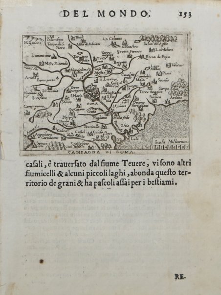 Per la prima volta pubblicata nel "Theatro del mondo" di Pietro Marchetti edito a Brescia nel 1598, questa carta è tratta dalle "Relationi universali di Giovanni Botero", pubblicato sempre in Brescia nel 1599. Le carte, copiate da quelle incise da Philipp Galle per l'Epitome di Ortelius (Anversa 1583), sono incise da un anonimo artista e inserite in una pagina di testo in italiano. Nota anche una ristampa delle stesse, pubblicata da Alessandro Vecchi a Venezia nel 1618 e ancora nel "Theatro del mondo" di Giovanni M. Turrini, (1655), e Scipion Banca (1657). Incisione in rame, in ottimo stato di conservazione. Rara. Miniature map, first published by Pietro Maria Marchetti in "Theatro del mondo" (Brescia 1598), this example is taken from "Relationi universali di Giovanni Botero", Brescia 1599. The second epitome of Abraham Ortelius’ folio !eatrum was produced in Italy by Pietro Maria Marchetti and the 109 new maps, by an unknown engraver, are accompanied by Italian text. The plates are close imitations of those of Philip Galle (see 1577 & 1583), likely the 1593 edition with Italian text.These maps were also used by the same publisher to illustrate an edition of Giovanni Botero’s Le Relationi universali, probably issued in 1599 as its preface was dated 15 December 1598. Another edition published by Alessandro Vecchi, Venice, 1618, included a reissue of the 1599 sheets.Theey were published again in 1655 (there were two issues with different title-pages and dedications dated 15 July & 20 September) and also 1667 in the "Theatro del mondo" by Giovanni Turrini e Scipion Banca. Copperplate with fine later hand colour, in very good conditions. Rare. Cfr. G. King, Miniature Antique Maps, pp. 78-79.