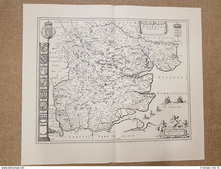 Carta geografica o Mappa Essex Anno 1662 Joan Blaeu Ristampa