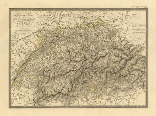 Carte Générale Phisique et Routiere des 22 Cantons de la Confederation Suisse