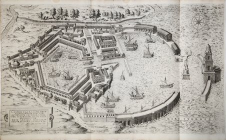 Bulino, 1575, iscritto, firmato e datato nel cartiglio in basso a sinistra: CLAVDII. ET. TRAIANI. IMPP. / ADMIRABILIVM. POR TVVM / OSTIENSIVM ORTHOGRAPHA. / PER STEPHANVM DV PERACH / ARCHITECTVM / IVXTA. ANTIQVA VESTIGIA / ACCVRATISSIME. DELINEATA. // Ant. Lafreri exc. Romae 1575. Ricostruzione del Porto di Claudio e Traiano ad Ostia, incisa da Etienne Duperac per l’editore Antonio Lafreri. Derivazione della ricostruzione di Pirro Ligorio, già interpretata da Antonio Labacco (1552) e da Giulio de Musi per l’editore Michele Tramezzini (1554). Esemplare nel terzo stato di cinque, con le firme di Paolo Graziani e Pietro de Nobili (cfr. Bifolco/Ronca tav. 1165); tiratura databile al 1586. Magnifica prova, impressa su carta vergata coeva con filigrana “ancora nel cerchio con stella” (cfr. Woodward nn. 158-171), rifilata al rame ai lati, con margini in alto e in basso, in ottimo stato di conservazione. “L’incisione è tratta da un disegno di Pirro Ligorio che raffigura la città e il porto di Ostia voluto dall’imperatore Claudio ed ampliato dall’imperatore Traiano. Il porto fatto costruire da Claudio tra il 42 e il 46, aperto a ponente con la protezione di due moli, andò soggetto ad insabbiamenti, motivo per cui Traiano nel 103 lo restaurò facendo costruire un altro bacino ad Est. L’incisione riprende il tipo di stampe destinate a mostrare al grande pubblico la grandiosità delle costruzioni romane. La stampa ebbe un notevole successo, infatti, oltre a quella qui riprodotta da Giulio de Musi su disegno di Pirro Ligorio per i tipi di Michele Tramezzino, che si premunì del privilegio decennale sia della Serenissima che dello Stato Pontificio, si annoverano molte altre versioni. La prima del 1552 si deve ad Antonio Labacco, la seconda è quella qui proposta. La terza si deve ad Étienne Du Pérac, edita dal Lafréry nel 1575, la quarta è quella incisa dal Brambilla per Claude Duchet nel 1581” (cfr. Marigliani, ' Lo splendore di Roma nell’Arte incisoria del Cinquecento). “Alla morte del Lafreri (1577) la matrice venne ereditata da Stefano Duchetti, che la cedette a Paolo Graziani (inv. del 1581, n. 20 descritta come “Il porto d’austriaf.o Imperiale”). Successivamente venne acquisita da Pietro de Nobili (inv. 24 maggio 1585, n. 36, “El porto d’hostia imperaiale”). Sono note delle tirature di entrambi gli editori. Un’altra stesura, databile alla metà del ’600, è dovuta a Gian Giacomo de Rossi. L’opera è elencata nell’ultimo catalogo della tipografia de Rossi, redatto da Lorenzo Filippo nel 1735 (p. 20, n. 1 come “Porto Traiano nelle asua forma antica disegnato, e intagliato a bulino da Stefano du Perac in foglio imperiale per traverso”). Il fondo della calcografia de Rossi venne venduto da Lorenzo Filippo e confluì nella neonata Calcografia Camerale, della quale è nota l’ultima stesura della lastra” (cfr. Cartografia e topografia italiana del XVI secolo, p. 2270). L’opera appartiene allo ' Speculum Romanae Magnificentiae, la prima iconografia della Roma antica. ' Lo ' Speculum ' ebbe origine nelle attività editoriali di Antonio Salamanca e Antonio Lafreri (Lafrery). Durante la loro carriera editoriale romana, i due editori - che hanno lavorato insieme tra il 1553 e il 1563 - hanno avviato la produzione di stampe di architettura, statuaria e vedutistica della città legate alla Roma antica e moderna. Le stampe potevano essere acquistate individualmente da turisti e collezionisti, ma venivano anche acquistate in gruppi più grandi che erano spesso legati insieme in un album. Nel 1573, Lafreri commissionò a questo scopo un frontespizio, dove compare per la prima volta il titolo Speculum Romanae Magnificentiae. Alla morte di Lafreri, due terzi delle lastre di rame esistenti andarono alla famiglia Duchetti (Claudio e Stefano), mentre un altro terzo fu distribuito tra diversi editori. Claudio Duchetti continuò l’attività editoriale, implementando le lastre dell. Etching with engraving, 1575, inscribed, signed and dated in the cartouche at lower left: CLAVDII. ET. TRAIANI. IMPP. / ADMIRABILIVM. POR TVVM / OSTIENSIVM ORTHOGRAPHA. / PER STEPHANVM DV PERACH / ARCHITECTVM / IVXTA. ANTIQVA VESTIGIA / ACCVRATISSIME. DELINEATA. // Ant. Lafreri exc. Romae 1575. Reconstruction of the Port of Claudius and Trajan at Ostia, engraved by Etienne Duperac for the publisher Antonio Lafreri. Derivation of Pirro Ligorio's reconstruction, already interpreted by Antonio Labacco (1552) and Giulio de Musi for the publisher Michele Tramezzini (1554). Example in the third state of five, with signatures of Paolo Graziani and Pietro de Nobili (see Bifolco/Ronca pl. 1165); print issue around 1586. Magnificent proof, printed on contemporary laid paper with "anchor in the circle with star" watermark (cf. Woodward nos. 158-171), trimmed to copperplate at sides, top and bottom margins, in excellent condition. “The engraving is taken from a drawing by Pirro Ligorio depicting the city and port of Ostia commissioned by Emperor Claudius and enlarged by Emperor Trajan. The harbor built by Claudius between 42 and 46, opened to the west with the protection of two piers, became subject to silting, which is why Trajan in 103 restored it by having another dock built to the east. The engraving echoes the type of prints intended to show the general public the grandeur of Roman buildings. The print had considerable success; in fact, in addition to the one reproduced here by Giulio de Musi from a drawing by Pirro Ligorio for the printer Michele Tramezzino (who was granted a ten-year privilege by both the Serenissima and the Papal States) there are many other versions, due to Antonio Labacco, Étienne Du Pérac and Ambrogio Brambilla for Claude Duchet in 1581" ' (translation from C. Marigliani, ' Lo splendore di Roma nell’Arte incisoria del Cinquecento). Upon the death of Lafreri (1577) the plate was inherited by Stefano Duchetti, who gave it to Paolo Graziani (inv. of 1581, no. 