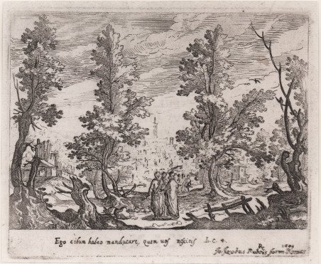 Acquaforte, 1609, monogrammata in lastra in basso a destra. Bell’esemplare di secondo stato, con l’indirizzo di Giovanni Giacomo de Rossi aggiunto in basso, impresso su carta vergata coeva, in ottimo stato di conservazione. Remigio Cantagallina, disegnatore di paesaggio originario di Borgo San Sepolcro e attivo a Firenze nella prima metà del secolo XVII, è noto alla critica soprattutto come uno dei più produttivi seguaci di Giulio Parigi, l'artista brillante e poliedrico succeduto a Buontalenti nel ruolo di ingegnere granducale. Come il predecessore, Parigi organizzava nella propria abitazione incontri didattici informali, che conosciamo attraverso una famosa descrizione di Baldinucci. Questa scuola, o vogliamo dire accademia» era frequentata da un pubblico eterogeneo di artisti e dilettanti, desiderosi di istruirsi nei disparati campi di attività del maestro: l'insegnamento copriva varie discipline scientifiche e ingegneristi che, ma anche un bello e nuovo modo di toccar di penna vaghissimi paesi». In questo singolare ambiente si formò un gruppo di artisti che praticavano il disegno di paesaggio imitando lo stile prezioso e calligrafico del maestro. Ai nomi più celebri - sopra tutti Callot e successiva mente Stefano della Bella - si affiancava una galassia di ' petits maitres ' che solo gli sforzi critici degli ultimi decenni hanno gradualmente per messo di distinguere in tale cornice di studi si collocano anche le prime ricognizioni dell'opera di Cantagallina. Lo stesso Baldinucci, del resto, inserisce remigio e i suoi due fratelli [Antonio e Giovan Francesco] in un lungo elenco di frequentatori dell’Accademia. Una delle più importanti testimonianze biografiche dell'attività del Cantagallina è costituita dal taccuino di centocinque fogli (Biblioteca reale di Bruxelles), nel quale l'artista fermò, di volta in volta, le visioni di paesaggi e di città toccati durante un suo viaggio nei Paesi Bassi. ' Si tratta di un vero e proprio taccuino di viaggio dell'artista, che, al pari di tanti viaggiatori olandesi in Italia, raffigurava fedelmente i luoghi visitati (in particolare Bruxelles e dintorni), riunendo uno straordinario nucleo di vedute del la campagna e delle principali città fiamminghe. Nelle pagine del suo taccuino Remigio si soffermava anche a ritrarre compagni di viaggio, scene di vita quotidiana, installazioni manifatturiere, o qualsiasi altra cosa potesse attrarre la sua curiosità. La serie comprende una trentina di fogli datati, tutti compresi fra il 1612 ed il 1613, e numerose didascalie topografiche. (cfr. S. Rinaldi, ' Il Viaggio nelle Fiandre di Remigio Cantagallina ' in Annali della Scuola Normale Superiore di Pisa. Classe di Lettere e Filosofia, Vol. 3, No. 2, (2011), pp. 465-495). Etching, 1609, signed with monogram lower right in the image. Good example, of the second state with De Rossi’ address, printed on contemporary laid paper, very good condition. Remigio Cantagallina, a landscape designer originally from Borgo San Sepolcro and active in Florence in the first half of the 17th century, is known to critics above all as one of the most productive followers of Giulio Parigi, the brilliant and versatile artist who succeeded Buontalenti as engineer. Like his predecessor, Parigi organized informal didactic meetings in his own home, which we know from a famous description by Baldinucci. This school, or should we say “academy” was attended by a heterogeneous public of artists and amateurs, eager to educate themselves in the disparate fields of activity of the master. In this singular environment was formed a group of artists who practiced landscape drawing imitating the precious and calligraphic style of the master. The most famous names - above all Callot and Stefano della Bella - were flanked by a galaxy of petits maitres that only the critical efforts of the last decades have gradually made it possible to distinguish in such a framework of studies the first reconnaissance of Cantagallina's work. Baldinucci himself, after all, includes Remigio and his two brothers [Antonio and Giovan Francesco] in a long list of frequenters of the Accademia. One of the most important biographical testimonies of Cantagallina's activity is the notebook of one hundred and five sheets (Royal Library of Brussels), in which the artist wrote down, from time to time, the visions of landscapes and cities he visited during his journey in the Netherlands. ' ' It is a real travel notebook of the artist, who, like many Dutch travelers in Italy, faithfully depicted the places he visited (especially Brussels and its surroundings), gathering an extraordinary nucleus of views of the countryside and the main Flemish cities. In the pages of his notebook Remigio also lingered to portray fellow travelers, scenes of daily life, manufacturing installations, or anything else that might attract his curiosity. The series includes about thirty dated sheets, all between 1612 and 1613, and numerous topographical captions. (cf. S. Rinaldi, ' Il Viaggio nelle Fiandre di Remigio Cantagallina ' in Annali della Scuola Normale Superiore di Pisa. Classe di Lettere e Filosofia, Vol. 3, No. 2, (2011), pp. 465-495). Cfr.