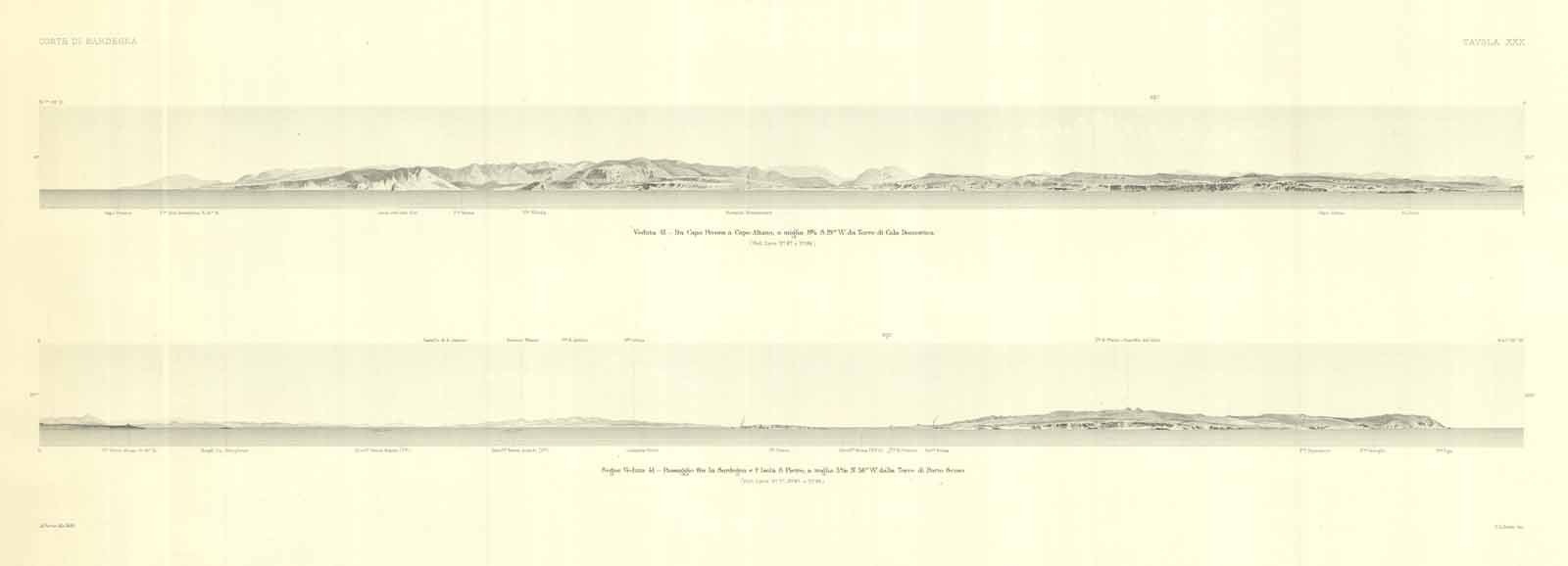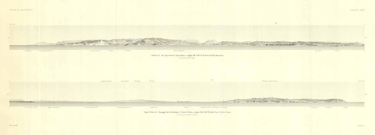 Da Capo Peroca a Capo Altano da Torre di Cala Domestica.- Passaggio fra la Sardegna e l'Isola di S. Pietro dalla Torre di Porto Scuso | Gravures | Porro A. dis. & Colombo V. inc