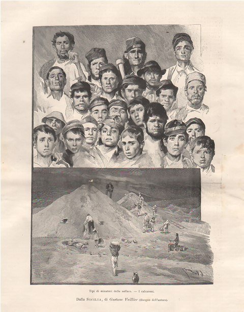Due immagini: Tipi di minatori delle solfatare - I calcaroni. Testo al retro