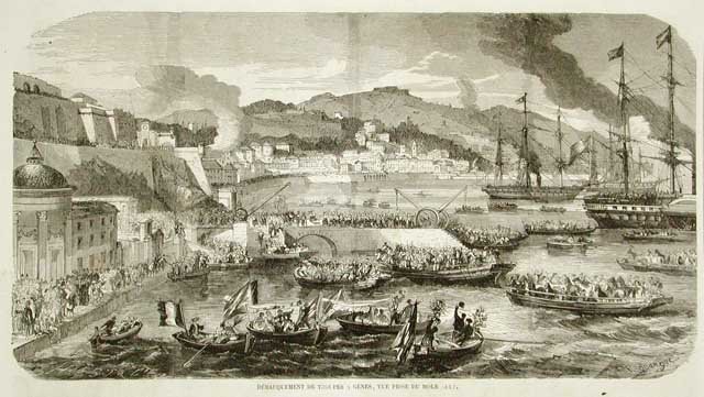 Debarquement de troupes a Genes, vue prise du Mole neuf