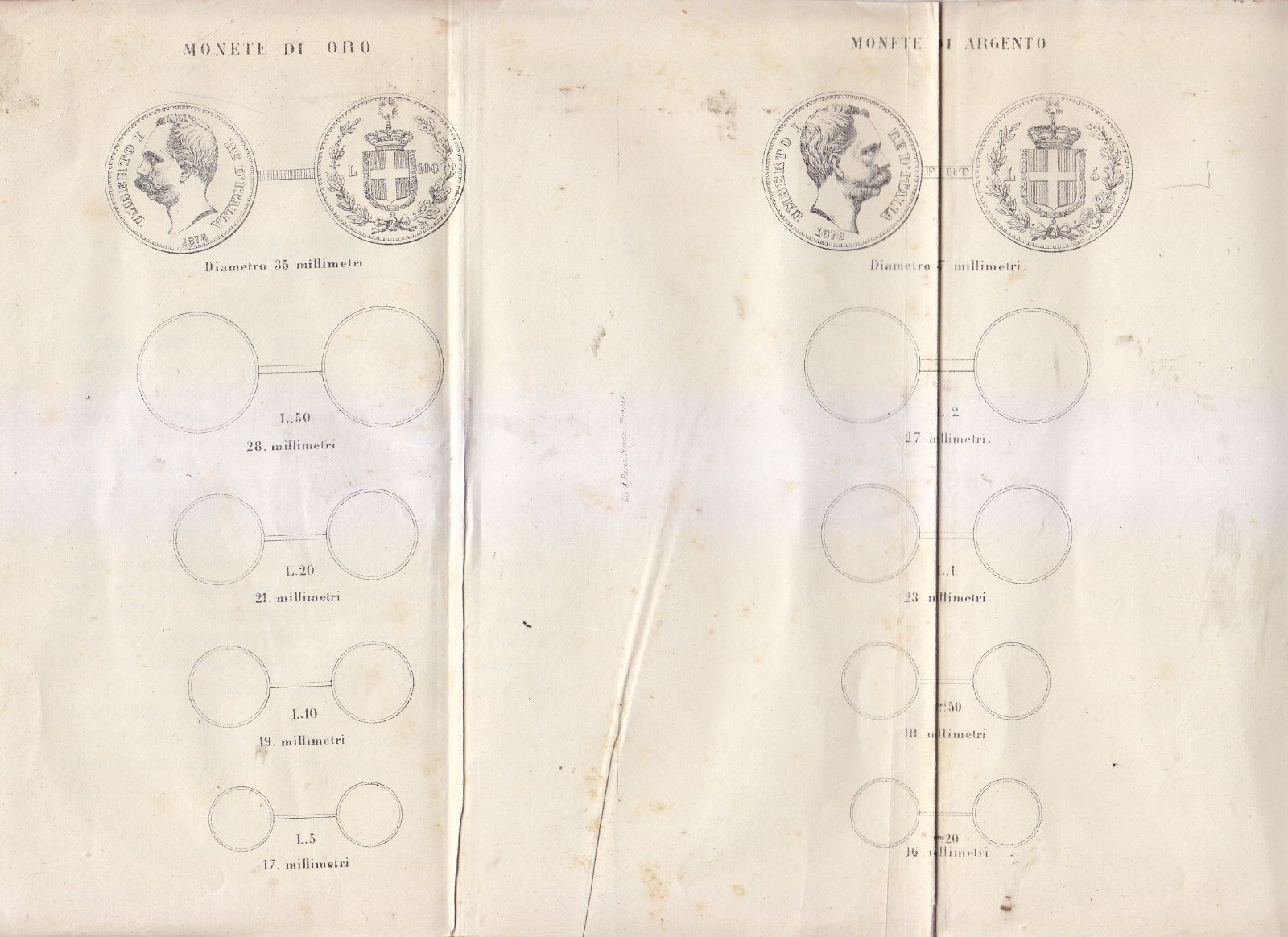 2 pagine (2 facciate) + tavola ripiegata con i disegni delle monete.