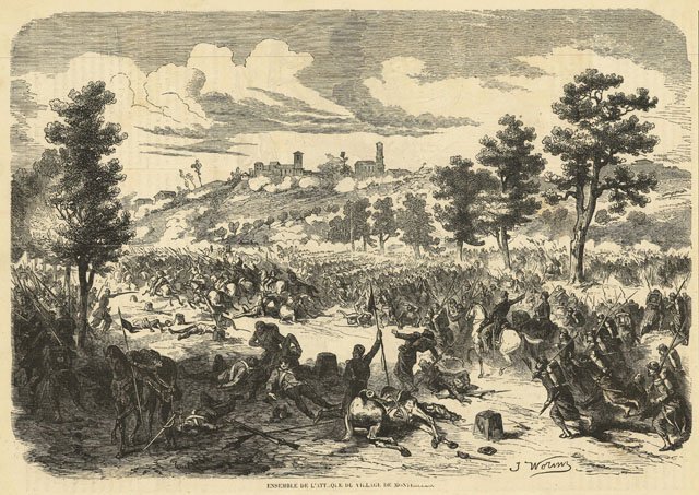 Ensemble de l'attaque du village de Montebello | Gravures | Worm, Worm