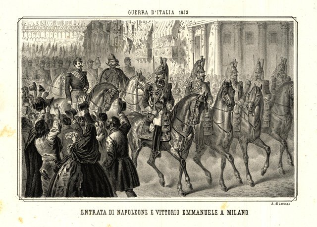 Rappresentazione dell'entrata trionfale a Milano di Napoleone III e Vittorio Emanuele.