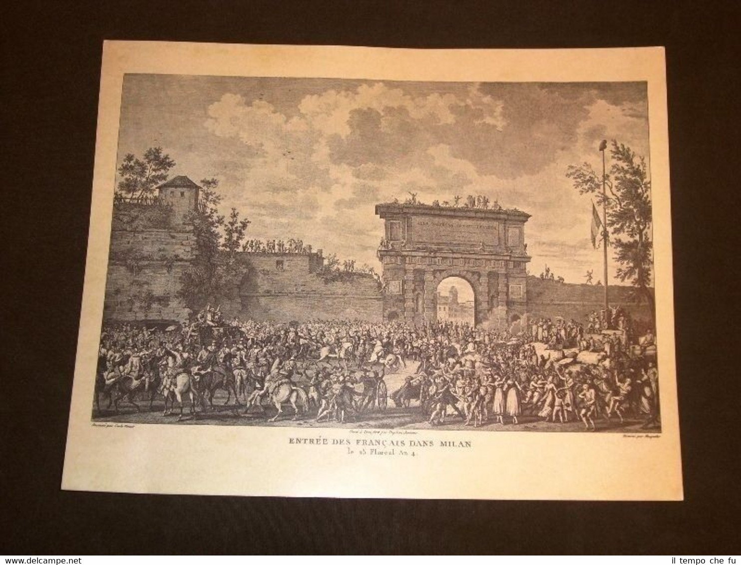 Splendida Stampa con retro bianco Estratta da Rivista d'Epoca Entrée des francais dans Milan Ingresso dei francesi a Milano GBA-084T Dimensioni Cm 29,00 x 23,00 Qualora vogliate delle scansioni migliori contattateci, soddisferemo ogni vostra richiesta. Per domande o informazioni in merito potete contattarci in qualsiasi momento tramite al nostro account ILTEMPOCHEFU Paypal Carta di credito Bonifico bancario Accuratamente adagiate su un cartoncino e protette da pellicola trasparente rigida il tutto viene inserito dentro plico di adeguate dimensioni per proteggerne l'integrità