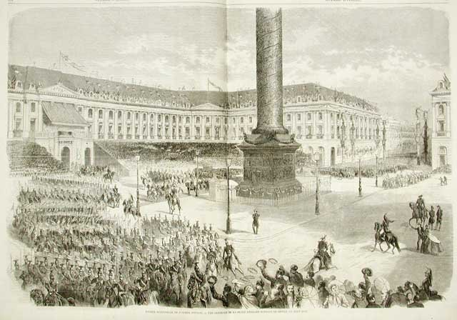 Entree solennelle de l'armee d'Italie - Vue generale de la place Vendome pendant le defile (14 Aout 1859)