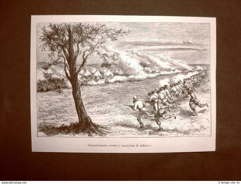 Rara stampa estratta da pubblicazione del 1863. .stampa che ha quindi oltre 156 anni! L'esplorazione dell'Africa centrale nel 1863 Combattimento contro i cacciatori di schiavi GDM1863-050 Dimensioni Cm 17,00 x 13,00 Qualora vogliate delle scansioni migliori contattateci, soddisferemo ogni vostra richiesta. Paypal Carta di credito Bonifico bancario Spedizione con posta ordinaria o raccomandata scelta dall'acquirente nel momento del pagamento