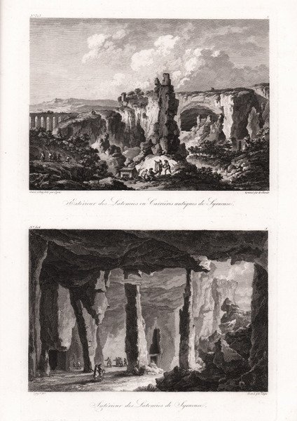Exterieur des Latomies ou Carrieres antiques de Syracuse - Interieur des Latomies de Syracuse | Gravures | SAINT NON Richard de