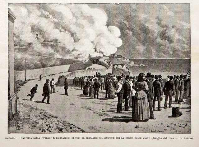 Genova / Batteria della Strega: Esercitazione di tiro al bersaglio col cannone per la difesa delle coste