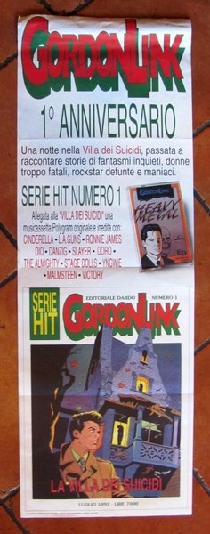 GORDON LINK - 1° Anniversario - La Villa dei Suicidi, 1992 - Locandina Pubblicitaria 34x100