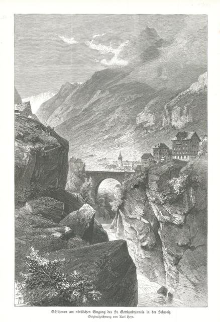 Goschenen am nordlichen Eingang des St. Gotthardtunnels in der Schweiz. | Gravures | Weber J. J.