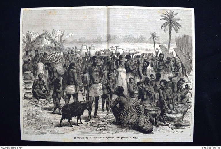 Rara incisione estratta da pubblicazione del 1876. .incisione che ha quindi oltre 141 anni! Il mercato di Kawele capitale del paese di Ujiji Dimensioni Cm 32,00 x 22,00 EP1876 - 005 Qualora vogliate delle scansioni migliori contattateci, soddisferemo ogni vostra richiesta. Paypal Carta di credito Bonifico bancario Accuratamente adagiate su un cartoncino e protette da pellicola trasparente rigida, il tutto viene inserito dentro plico di adeguate dimensioni per proteggerne l'integrità.