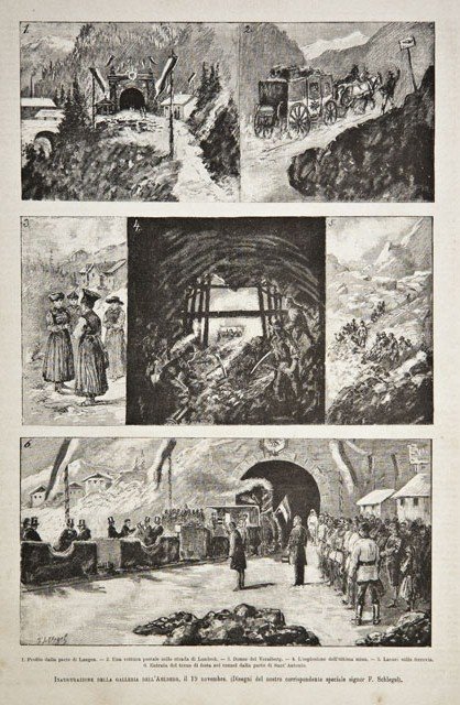 Inaugurazione della galleria dell’Arlberg, il 19 novembre. Profilo . Langen - Una vettura postale . - Donne del Voralberg - .