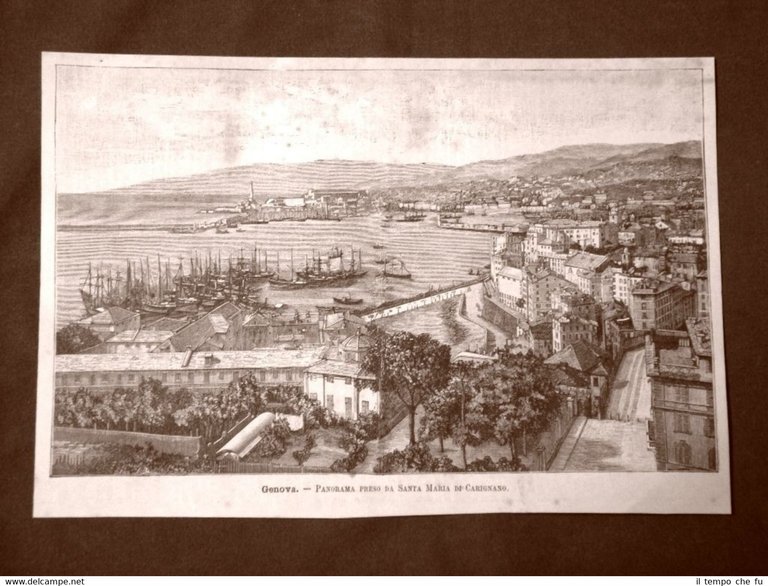 Incisione del 1891 Rarissimo panorama di Genova - Liguria