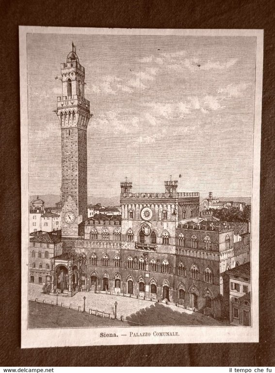 Incisione del 1891 Siena, Palazzo Comunale o Municipio - Toscana