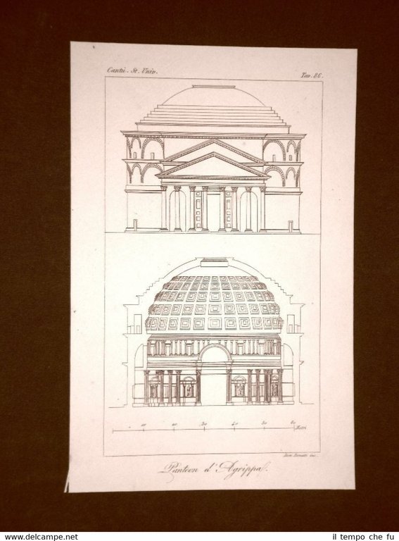 Incisione in rame del 1846 Il Pantheon d'Agrippa in Roma Bonatti - Cesare Cantù