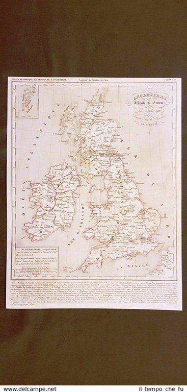 Inghilterra, Scozia e Irlanda Dal 1281 al 1400 Carta geografica del 1859 Houze