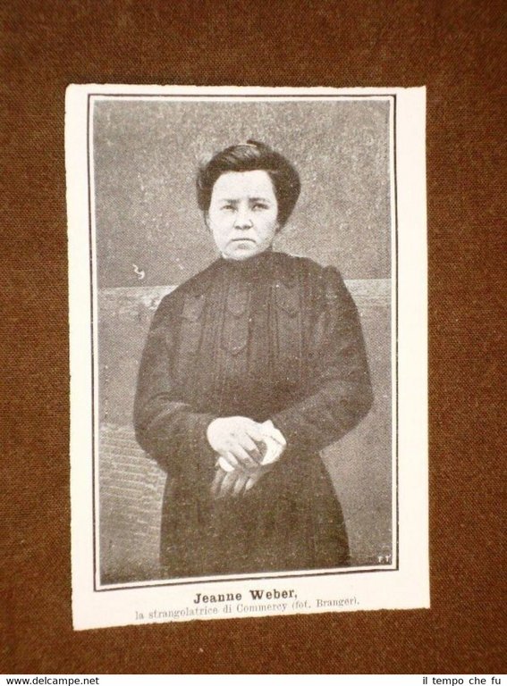 Rara Stampa Estratta da Rivista d'epoca del 1908 Jeanne Weber nel 1908 La strangolatrice di Commercy II1908-019T Dimensioni Cm 8,00 x 12,00 Qualora vogliate delle scansioni migliori contattateci, soddisferemo ogni vostra richiesta. Paypal Carta di credito Bonifico bancario Accuratamente adagiate su un cartoncino e protette da pellicola trasparente rigida il tutto viene inserito dentro plico di adeguate dimensioni per proteggerne l'integrità