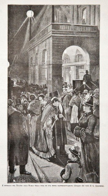 L’entrata del Teatro alla Scala nella sera di una prima rappresentazione