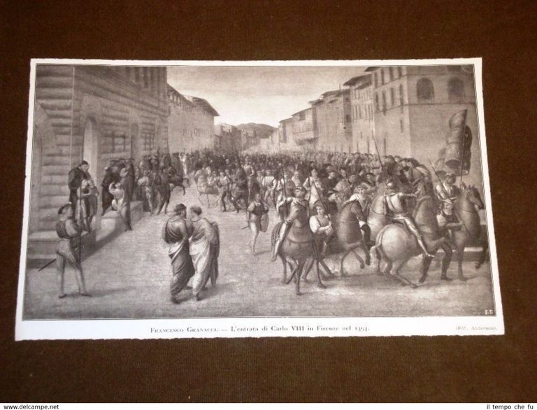 Rara Stampa Estratta da Rivista d'epoca del 1913 L'Entrata di Carlo VIII in Firenze nel 1494 di Francesco Granacci II1913-046T Dimensioni Cm 22,50 x 14,50 Qualora vogliate delle scansioni migliori contattateci, soddisferemo ogni vostra richiesta. Paypal Carta di credito Bonifico bancario Accuratamente adagiate su un cartoncino e protette da pellicola trasparente rigida il tutto viene inserito dentro plico di adeguate dimensioni per proteggerne l'integrità