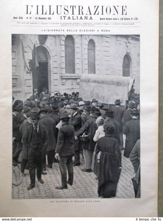 L'Illustrazione Italiana Rivista originale del 23 Novembre 1919 Anno 46 - N. 47 Rarità per appassionati e collezionisti Segue sotto solamente un saggio del ricco contenuto presente Illustrato in copertina (segue foto): La giornata delle elezioni a Roma Illustrazione presente nelle pagine interne (segue foto): Le peregrinazioni dei cavalli di San Marco dal 1797 al 1815 Altra Illustrazione presente nelle pagine interne (segue foto): Quadri e statue alla mostra della promotrice a Torino Tra gli argomenti trattati e le notizie contenute: Viaggio elettorale di un giornalista. El Baruni a Napoli A Fiume liberata. La proclamazione dello statuto in Cirenaica. La festa del re in Dalmazia. .e tanto altro ancora! Qualora vogliate maggiori delucidazioni contattateci. In questo negozio troverai un'intera categoria dedicata alla collezione dell'Illustrazione Italiana , ne inseriamo diverse giornalmente. Sotto il link diretto a tutta la collezione: Riviste disponibili Cliccaci sopra, troverai di certo ciò che cerchi! L'illustrazione Italiana è stata una rivista settimanale italiana con sede a Milano, pubblicata ininterrottamente dal 1873 al 1962 per un totale di quasi 5 000 numeri. Fondata a Milano con la testata «Nuova illustrazione universale», fu edita dalla casa editrice Fratelli Treves, fondata da Emilio Treves, il quale fu anche il primo direttore della rivista. L'illustrazione italiana comincia ad avere un'ampia diffusione negli ambienti della medio-alta borghesia, grazie alla qualità degli articoli e soprattutto delle illustrazioni, spesso affidate ad artisti di primo piano come Achille Beltrame, Pietro Scoppetta, Luigi Bompard, Giuseppe Cosenza ed Ettore Ximenes (il quale svolgeva anche le funzioni di vicedirettore), tale qualità fu mantenuta poi nel tempo anche in seguito all'avvento della fotografia, tecnica che vide rappresentati sulle pagine dell'«Illustrazione» alcuni tra i migliori fotogiornalisti nazionali: Armando Bruni, Mario Crimella, Giulio Parisio ed Emilio Sommariva. Per i testi il periodico si avvalse della collaborazione, in qualità di articolisti, di alcuni dei nomi più importanti della letteratura italiana, fra cui ricordiamo Giosuè Carducci, Grazia Deledda e Luigi Pirandello (premi Nobel per la letteratura), lo scrittore verista Giovanni Verga, il poeta Gabriele D'Annunzio, il critico letterario e favolista Luigi Capuana ed Edmondo De Amicis, autore del celeberrimo romanzo "Cuore", capolavoro della letteratura per ragazzi. La grande fortuna dell'Illustrazione Italiana durò fino alla morte di Emilio Treves (1916), dopo la quale, pur avendo ancora tra i propri collaboratori scrittori del calibro di Eugenio Montale, Elio Vittorini, Salvatore Quasimodo, Riccardo Bacchelli, Italo Pietra, Niccolò Giani e Sergio Solmi, la rivista cominciò a mostrare i segni di un lento declino. La promulgazione delle leggi razziali fasciste accelerò il processo in atto: nel 1939 la Treves dovette cedere l'azienda alla Garzanti. Verso la metà del 1942, in seguito agli eventi della seconda guerra mondiale, L'illustrazione rallentò le sue uscite, fino ad essere trasformata in mensile nel 1951 da Livio Garzanti. Gli anni cinquanta videro la crescita vertiginosa dei rotocalchi, settimanali popolari di attualità. «L'Illustrazione Italiana» vide ridursi progressivamente il suo spazio, finché Garzanti la chiuse nel 1962. L'editore Guanda riprese la testata alla fine del 1981 e la ripubblicò con periodicità bimestrale. Il tentativo non incontrò sufficiente fortuna e la rivista fu chiusa nel 1996. Paypal Carta di credito Bonifico bancario Spedizione con posta ordinaria o raccomandata scelta dall'Acquirente nel momento del pagamento