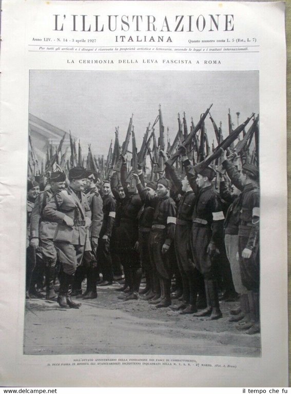 L'Illustrazione Italiana Rivista originale del 3 Aprile 1927 Anno 54 - N. 14 Rarità per appassionati e collezionisti Segue sotto solamente un saggio del ricco contenuto presente Illustrato in copertina (segue foto): La cerimonia della leva fascista a Roma Illustrazione presente nelle pagine interne (segue foto): La morte di Luigi Luzzatti Altra Illustrazione presente nelle pagine interne (segue foto): Le gloriose tappe di De Pinedo nell'America del Sud Tra gli argomenti trattati e le notizie contenute: Roma: la leva fascista nell'ottavo annuale dei fasci Le entusiastiche accoglienze a De Pinedo nell'America del Sud I transvolatori del "Santa Maria" a Buenos Aires La nascita della Tripolitana La prima fiera coloniale Sul teatro degli avvenimenti cinesi Uomini e cose del giorno: Ahmed Bey Zogu, presidente della republica Albanese Il "Cenacolo" di Leonardo e la chiesa delle Grazie La manifattura di Signa .e tanto altro ancora! N.B. PAGINE CENTRALI QUASI STACCATE DAL GIORNALE GRANDE STRAPPO A PAG.239 (ARTICOLO MORTE LUZZATTI) Qualora vogliate maggiori delucidazioni contattateci. In questo negozio troverai un'intera categoria dedicata alla collezione dell'Illustrazione Italiana , ne inseriamo diverse giornalmente. Sotto il link diretto a tutta la collezione: Riviste disponibili Cliccaci sopra, troverai di certo ciò che cerchi! L'illustrazione Italiana è stata una rivista settimanale italiana con sede a Milano, pubblicata ininterrottamente dal 1873 al 1962 per un totale di quasi 5 000 numeri. Fondata a Milano con la testata «Nuova illustrazione universale», fu edita dalla casa editrice Fratelli Treves, fondata da Emilio Treves, il quale fu anche il primo direttore della rivista. L'illustrazione italiana comincia ad avere un'ampia diffusione negli ambienti della medio-alta borghesia, grazie alla qualità degli articoli e soprattutto delle illustrazioni, spesso affidate ad artisti di primo piano come Achille Beltrame, Pietro Scoppetta, Luigi Bompard, Giuseppe Cosenza ed Ettore Ximenes (il quale svolgeva anche le funzioni di vicedirettore), tale qualità fu mantenuta poi nel tempo anche in seguito all'avvento della fotografia, tecnica che vide rappresentati sulle pagine dell'«Illustrazione» alcuni tra i migliori fotogiornalisti nazionali: Armando Bruni, Mario Crimella, Giulio Parisio ed Emilio Sommariva. Per i testi il periodico si avvalse della collaborazione, in qualità di articolisti, di alcuni dei nomi più importanti della letteratura italiana, fra cui ricordiamo Giosuè Carducci, Grazia Deledda e Luigi Pirandello (premi Nobel per la letteratura), lo scrittore verista Giovanni Verga, il poeta Gabriele D'Annunzio, il critico letterario e favolista Luigi Capuana ed Edmondo De Amicis, autore del celeberrimo romanzo "Cuore", capolavoro della letteratura per ragazzi. La grande fortuna dell'Illustrazione Italiana durò fino alla morte di Emilio Treves (1916), dopo la quale, pur avendo ancora tra i propri collaboratori scrittori del calibro di Eugenio Montale, Elio Vittorini, Salvatore Quasimodo, Riccardo Bacchelli, Italo Pietra, Niccolò Giani e Sergio Solmi, la rivista cominciò a mostrare i segni di un lento declino. La promulgazione delle leggi razziali fasciste accelerò il processo in atto: nel 1939 la Treves dovette cedere l'azienda alla Garzanti. Verso la metà del 1942, in seguito agli eventi della seconda guerra mondiale, L'illustrazione rallentò le sue uscite, fino ad essere trasformata in mensile nel 1951 da Livio Garzanti. Gli anni cinquanta videro la crescita vertiginosa dei rotocalchi, settimanali popolari di attualità. «L'Illustrazione Italiana» vide ridursi progressivamente il suo spazio, finché Garzanti la chiuse nel 1962. L'editore Guanda riprese la testata alla fine del 1981 e la ripubblicò con periodicità bimestrale. Il tentativo non incontrò sufficiente fortuna e la rivista fu chiusa nel 1996. Paypal Carta di credito Bonifico bancario Spedizione con posta ordinaria o raccomandata scelta dall'Acquirente nel momento del pagamento