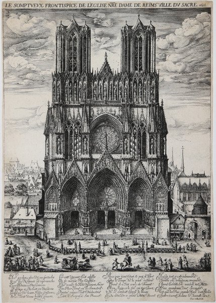 Acquaforte, 1625, firmata in basso al centro N. Deson Rem. In. Sculp. Et ex. Magnifica prova, nel secondo stato di tre con l’imprint dell’artista; esiste un terzo stato con l'excudit di Edmé Moreau, che apparentemente acquistò la lastra dopo la morte dell'artista. ' Impressa su carta vergata coeva e rifilata al rame, piega di stampa nella parte inferiore sinistra, minime abrasioni al verso, per il resto in ottimo stato di conservazione. Rara acquaforte della facciata della cattedrale di Reims dell'artista locale Nicolas de Son (attivo dal 1625 al 37), che fece parte di una breve stagione della stampa autoctona nella provincia di Champagne dagli anni 1620 agli anni 1640 insieme ad artisti come Edmé Moreau, Jean Colin e Nicolas Regnesson. La grande stampa rappresenta la facciata ovest della cattedrale in grande dettaglio, mostrando non solo le composizioni più ampie dei principali programmi scultorei chiaramente delineati, ma anche diversi passaggi architettonici e scultorei secondari, come i doccioni dell'edificio e i trafori delle sue rinomate finestre in vetro dipinto. La tavola sembra aver seguito il successo dell'acquaforte di Moreau del 1623 dello stesso soggetto, ma l'ha superato per qualità tecnica e sfumature storiche ("Quella eseguita da Nicolas de Son è migliore"; "In questa stampa, Nicolas de Son dimostra la sua sorprendente comprensione dell'arte gotica, rara all'epoca" [Age of the Musketeers, p. 124]). De Son, le cui prime opere mostrano l'influenza di Jacques Callot (c. 1592-1635), dimostra molta della maestria tecnica del famoso incisore lorenese: egli contrappone gli attori di pietra della storia sacra raffigurata nell'architettura con i variegati abitanti della città del XVII secolo, minuziosamente resi, che interagiscono con la cattedrale medievale, una gamma di personaggi dai mendicanti al portale principale, ai negozianti nelle loro bancarelle, ai cittadini di classe superiore con i loro cavalli e carrozze. De Son rende magistralmente il paesaggio urbano mentre si allontana, mostrando i recinti del palazzo arcivescovile (il Palais du Tau) sulla destra e i tetti di paglia (uno riparato dagli operai) delle abitazioni sulla sinistra. Le prime incisioni in pendant di De Son, Cristo e la donna di Samaria e La cena di Emmaus, mostrano ancora una notevole aderenza a Callot, ma le sue scene di genere un po' più tardive (per esempio La fiera del villaggio) e il suo capolavoro, Suite di dodici paesaggi, dimostrano scelte di disegno più originali. La presente acquaforte e un'opera simile che raffigura la chiesa abbaziale di Saint Nicaise, ora distrutta, sono le uniche due opere datate dell'artista, entrambe del 1625. Poco è noto della vita di Nicolas de Son, che lavorò come disegnatore e incisore a Reims, a parte alcune incisioni firmate e un riferimento alla sua morte nel 1637. De Son produsse un piccolo corpus di incisioni di Callot, Vignon e Jan Lys, così come due vedute della Cattedrale di Reims di sua invenzione, entrambe datate 1625. Bibliografia S. Reed, French Prints from the Age of the Musketeers, p. 124-5, no. 55; LeBlanc 15; M. Sutaine, Nicolas de Son Graveur, Travaux de l’Académie Impériale de Reims, vol. 35, no. 4 (1862), pp. 122-9. Etching, 1625, signed at the bottom center N. Deson Rem. In. Sculp. Et ex. Magnificent proof, rich in tones, of the second state of three with the artist's imprint, printed on contemporary laid paper, trimmed to the copperplate, printing crease in the lower left corner, minimal abrasions on the verso, otherwise in excellent condition. Rare etching of the façade of Reims Cathedral by the local artist Nicolas de Son (active 1625-37), who was part of a brief flourishing of native printmaking in the province of Champagne from the 1620s through the 1640s along with such artists as Edmé Moreau, Jean Colin, and Nicolas Regnesson. The large print represents the cathedral’s west front in great detail, with not only the broader compositions of the major sculptural programs clearly delineated, but also several ancillary architectural and sculptural passages, such as the building’s gargoyle waterspouts and the tracery of its renowned painted glass windows. Le somptueux frontispiece seems to have followed upon the success of Moreau’s 1623 etching of the same subject, but surpassed it in technical quality and historical nuance (“The one executed by Nicolas de Son is better”; “In this print, Nicolas de Son demonstrates his astonishing understanding of gothic art, rare at the time” [Age of the Musketeers, p. 124]). De Son, whose early works show the influence of Jacques Callot (c. 1592-1635), demonstrates much of the technical mastery of the famous Lorraine etcher: He contrasts the stony actors of sacred history depicted in the architecture with the varied, minutely rendered inhabitants of the seventeenth-century town interacting with the medieval cathedral, a range of characters from beggars at the main portal, to shopkeepers in their stalls, to upper-class citizens with their horses and carriages. De Son masterfully renders the townscape as it recedes in the distance, showing the precincts of the archbishop’s palace (the Palais du Tau) at the right and the thatched roofs (one being repaired by workmen) of dwellings at the left. De Son’s early pendant etchings, Christ and the Woman of Samaria and The Supper of Emmaus, still show considerable adherence to Callot, but his somewhat later genre scenes (e.g. The Village Fair) and his masterpiece, Suite of Twelve Landscapes, demonstrate more original design choices. The present etching and a similar piece depicting the now destroyed abbey church of Saint Nicaise are the artist’s only two dated works, both 1625. This impression of Le somptueux frontispiece carries De Son’s signature and his excudit, indicating that it is from the print’s second state; a third state exists with the excudit of Edmé Moreau, who apparently acquired the plate after the artist’s death