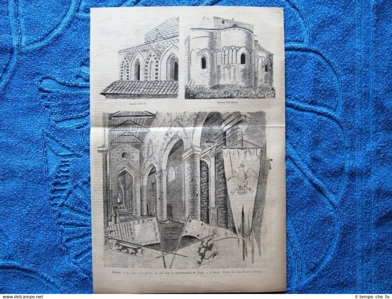 Rara Incisione Estratta da Rivista d'epoca del 1882 La Chiesa di S. Spirito a Palermo, ove avrà luogo la commemorazione dei Vespri L'interno - Angolo nord-est - Esterno dell'abside Dimensioni 24x36 II1882-009 Qualora vogliate delle scansioni migliori contattateci, soddisferemo ogni vostra richiesta. Paypal Carta di credito Bonifico bancario Accuratamente adagiate su un cartoncino e protette da pellicola trasparente rigida il tutto viene inserito dentro plico di adeguate dimensioni per proteggerne l'integrità