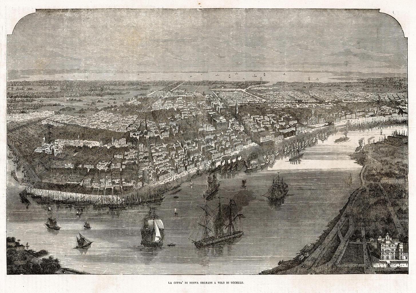 La città di Nuova Orleans a volo di uccello | Gravures | Sonzogno E. edit.