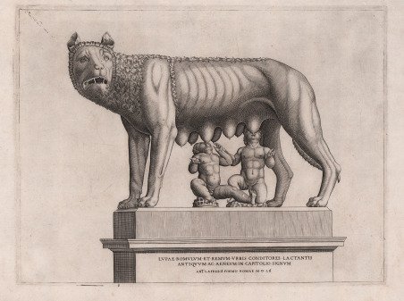 Lupae Romulum et Remum Urbis Conditores Lactantis Antiquum AC Aeneum in Capitolio Signum | Gravures | BEATRICETTO Nicolas Beatrizet detto
