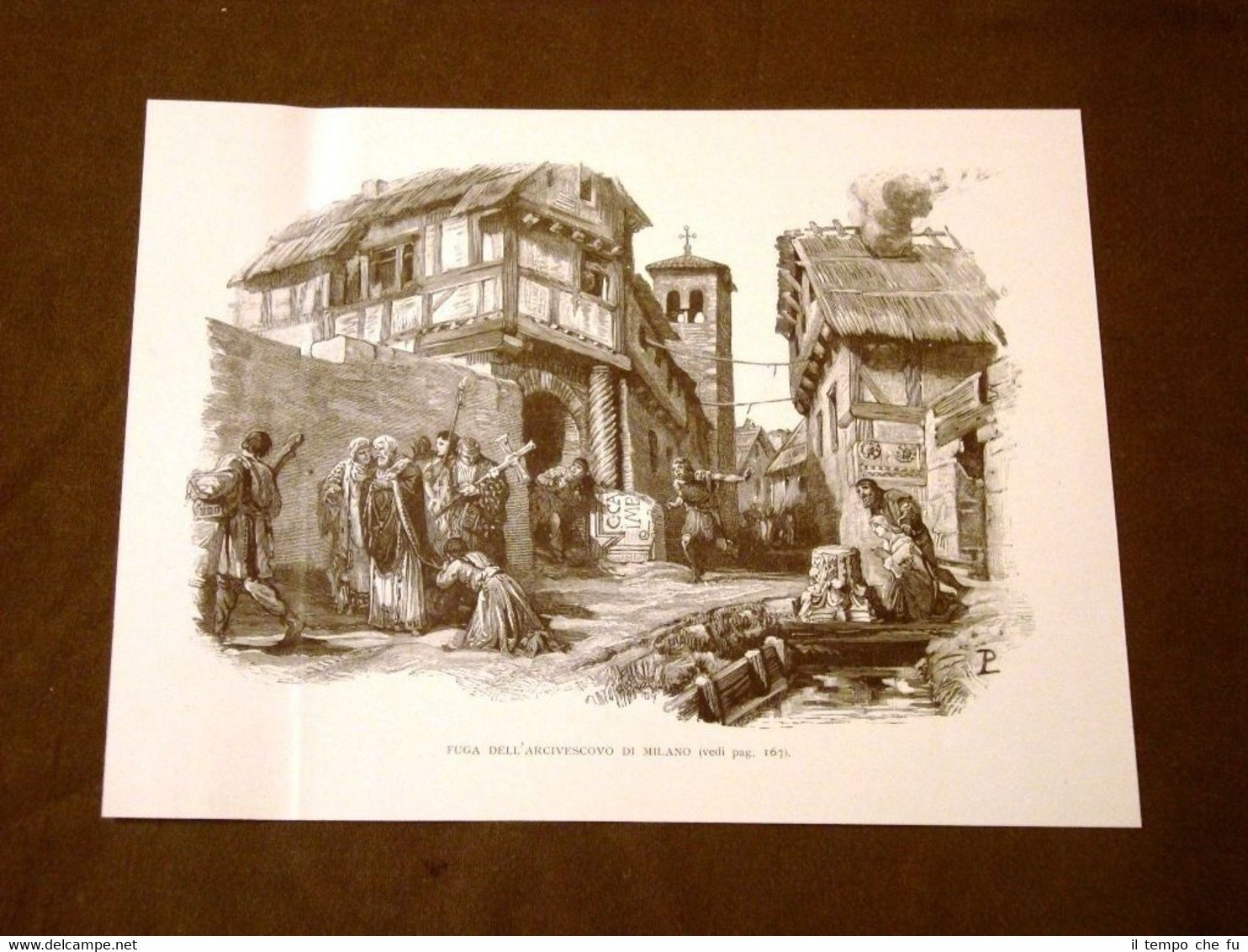 Medioevo d'Italia La fuga dell'Arcivescovo di Milano Incisione di L. Pogliaghi