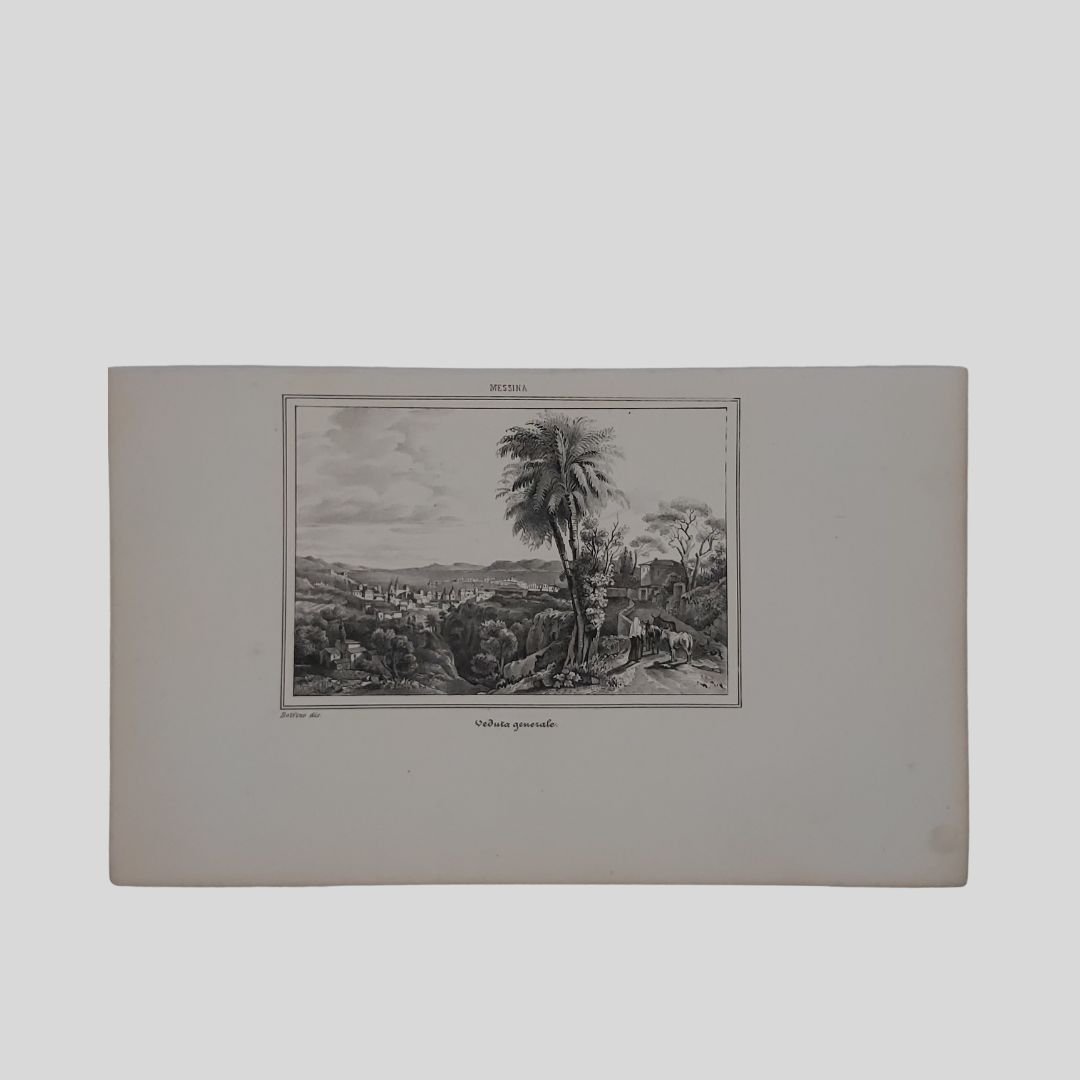 Litografia, 1852, cm 25,8×15,3 (tavola). In buone condizioni. Tratta da: Cesare Malpica, Panorama dell’universo, Napoli, Stab. dell’Ateneo 1852. Cesare Malpica. Prima avvocato poi insegnante infine giornalista, deve la sua fortuna letteraria – sebbene non univocamente giudicata dalla critica – proprio al reportage. Per lo più concentrate tra gli anni Quaranta e Cinquanta dell’Ottocento, escono le sue impressioni di viaggiatore dedicate a Venti giorni a Roma, Un mese negli Abruzzi: impressioni, ma anche Dal Sebeto al Faro: impressioni di un viaggio nelle Calabrie, e ancora Toscana, Umbria e Magna Grecia per arrivare, nel 1847, a una monografia dedicata alla Basilicata.