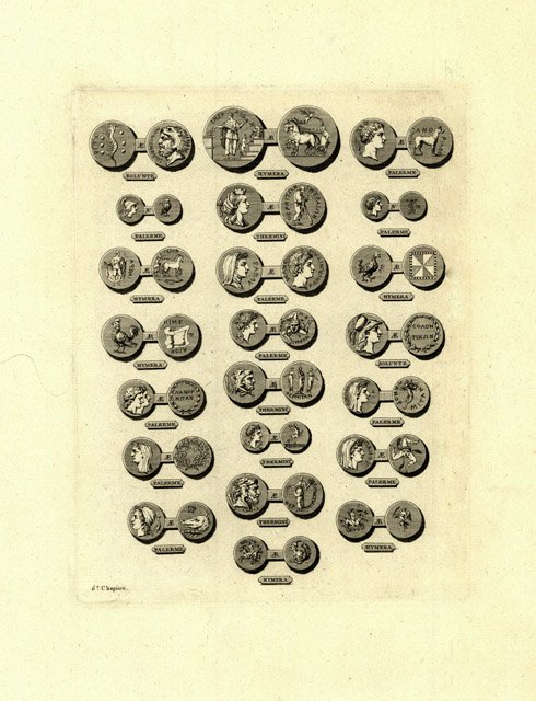 Raffigurazione di 12 monete entro ricco cartiglio