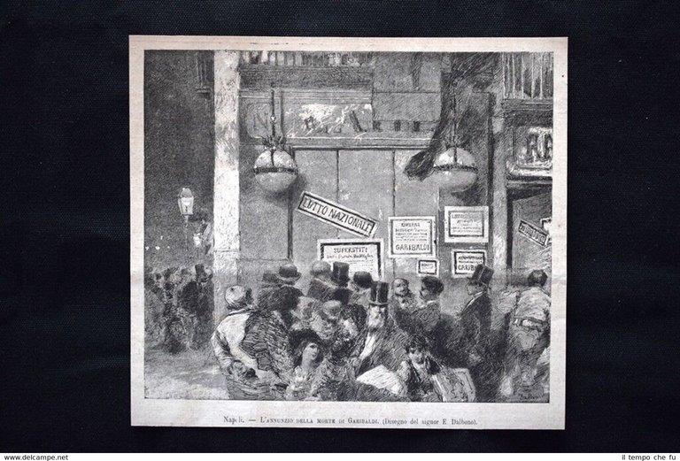 Napoli - L'annunzio della morte di Garibaldi Incisione del 1882