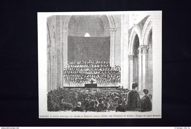 Napoli-Festa musicale in onore di Bellini,Collegio di Musica Incisione del 1876