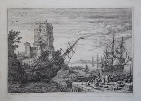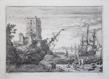 Veduta del porto di Napoli incisa a Roma dal celebre pittore francese. Opera tratta da Diverse Compositioni e Vedute inventate ed intagliate da Adriano Manglard in Roma l'an. 1753, primo stato vanti il numero. Incisione in rame, in ottimo stato di conservazione. Adrien Manglard (Lione, 12 marzo 1695 – Roma, 31 luglio 1760) è stato un pittore francese. A Lione fu allievo dell'olandese Adriaen van der Cabel. Quasi tutta la sua carriera pittorica si svolse in Italia, venendo accolto nell'Accademia di San Luca nel 1736. Di quel periodo è il dipinto del Naufragio, ora al museo di Guéret. Malgrado l'uso di tonalità scure e di una fattura più pesante di quella successiva di alcuni suoi allievi, nelle marine e in alcune sue incisioni del 1753-1754 Manglard mette in evidenza una inclinazione al pittorico ed anche un certo senso drammatico: esempi di questa pittura sono il Paesaggio, ora alla Ecole Nationale des Beaux-Arts del Louvre di Parigi, la Marina del museo di Chartres e il Naufragio del Museo di Belle Arti di Digione. Tra i suoi allievi è da menzionare Claude Joseph Vernet. View of the port of Naples engraved by the famous french painter. Taken from Diverse Compositioni e Vedute inventate ed intagliate da Adriano Manglard in Roma l'an. 1753. The harbour with the square tower: a three-masted boat moored in a port in which another is careened on its side, with a fort with a square tower guarding the entrance. Etching, lettered with “Manglard fec. Romae 1753” - First state, before the number, in very good conditions. Adrien Manglard (10 March 1695 – 1 August 1760) was a French painter, draughtsman, and engraver. He was a skilled marine painter, who was able to rapidly advance his career in Rome thanks to his compositional skills, selling paintings to clients such as the Rospigliosi family, Victor Amadeus II, King of Sardinia, and Philip, the Duke of Parma. The latter alone commissioned more than 140 paintings from Manglard. The son of a modest painter, Manglard was trained in Lyon by his godson Adriaen van der Cabel, a Dutch Golden Age landscapist. In 1734 Manglard was admitted to the Académie Royale de Peinture et de Sculpture, which he entered as a full member in 1736. In his youth he traveled to Rome, where he spent most of his life. He is said to have trained under Bernardino Fergioni (1674–1738) in Italy. Manglard also came into contact with artists in the circle of sculptor Pierre Le Gros the Younger (1666–1719), who commissioned two paintings from him before 1719. Manglard's best known pupil is arguably Claude-Joseph Vernet, who, upon his arrival in Rome, was welcomed by Manglard into his studio and initiated into seascape painting by him and Fergioni. Once concentrated in Rome, his work is today spread across private and institutional collections around the world. Manglard is also known for his mural painting. He painted the frescoes of two rooms in the Palazzo Chigi in Rome, including the Sala delle Marine. Cfr. Robert-Dumesnil 1835-71 I.239.9.