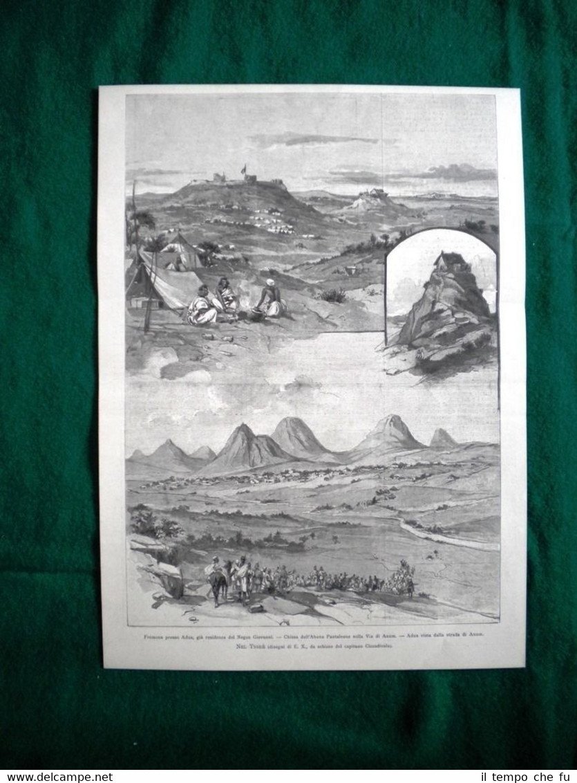 Rara Incisione Estratta da Rivista d'Epoca del 1885 Nel Tigrè nel 1895: Fremona presso Adua chiesa dell'Abuna Pantaleone sulla Via di Axum Adua vista dalla strada di Axum (disegno di E. Ximenes) Dimensioni 25x34cm II1895-09 Qualora vogliate delle scansioni migliori contattateci, soddisferemo ogni vostra richiesta. Paypal Carta di credito Bonifico bancario Accuratamente adagiate su un cartoncino e protette da pellicola trasparente rigida il tutto viene inserito dentro plico di adeguate dimensioni per proteggerne l'integrità