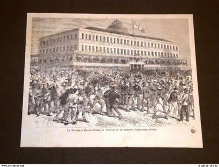 Splendida Incisione Ottocentesca Estratta da Rivista d'Epoca New Orleans La Rotonda momento di agitazione politica USA IP1881-012T Dimensioni Cm 24,00 x 19,50 Qualora vogliate delle scansioni migliori contattateci, soddisferemo ogni vostra richiesta. Paypal Carta di credito Bonifico bancario Accuratamente adagiate su un cartoncino e protette da pellicola trasparente rigida il tutto viene inserito dentro plico di adeguate dimensioni per proteggerne l'integrità