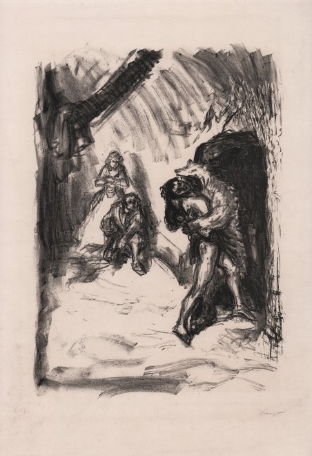 Occhio di Falco, travestito da Orso, travolge Magua | Gravures | SLEVOGT Max