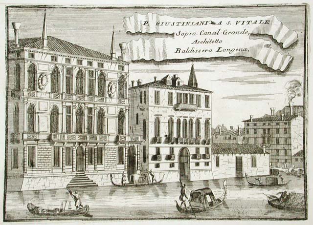 P. Giustiniani A S. Vitale / Sopra Canal-Grande, / Architetto / Baldissera Longena.